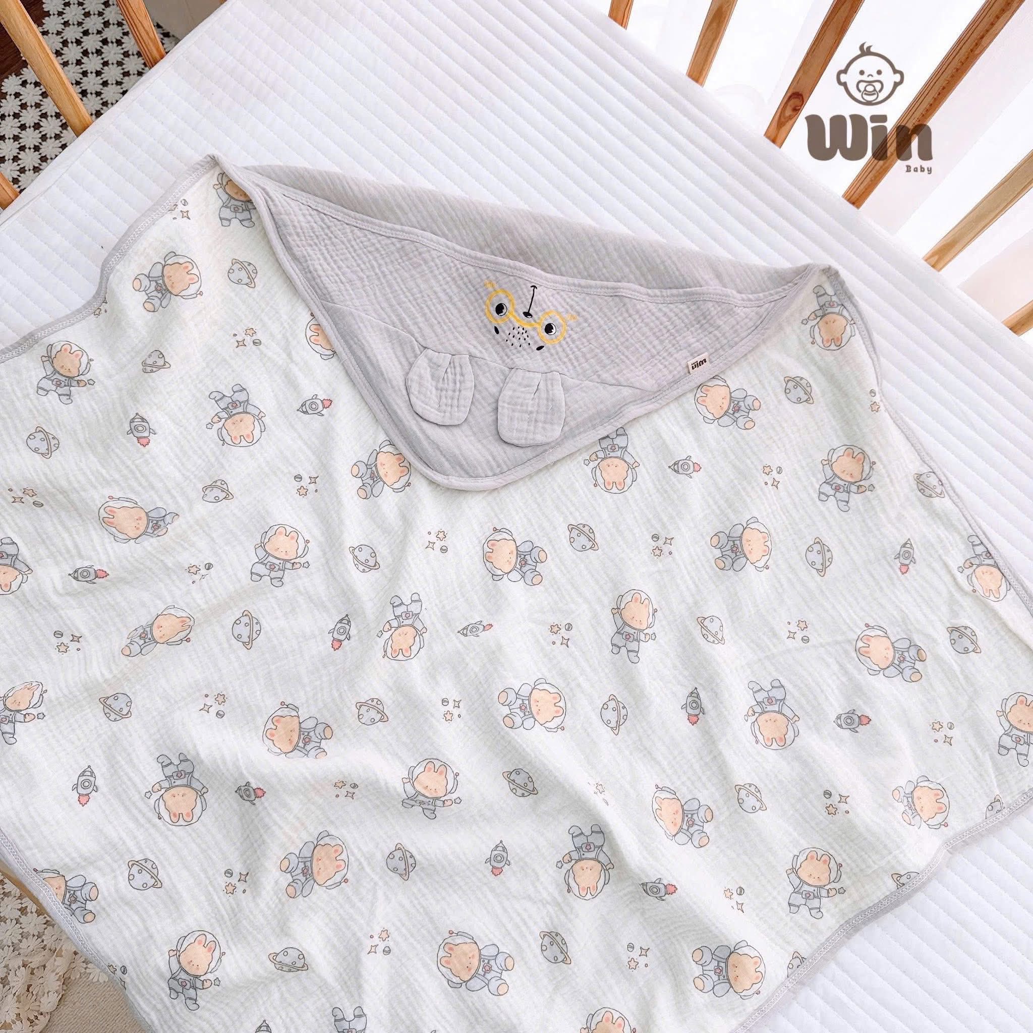 ✅Ủ xô Muslin thoáng mát,hoạ tiết bắt mắt : 1 mặt hình thú-1 mặt xô màu phù hợp cho cả bé trai-gái…