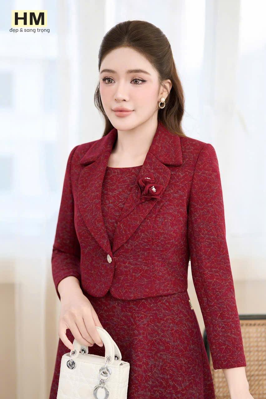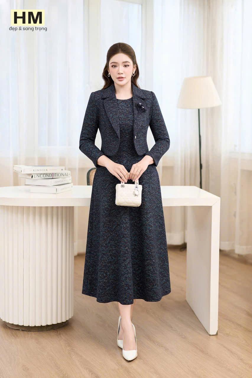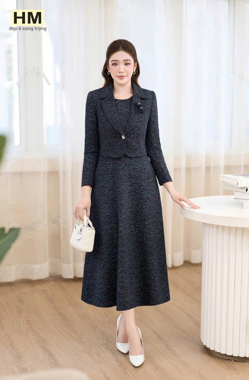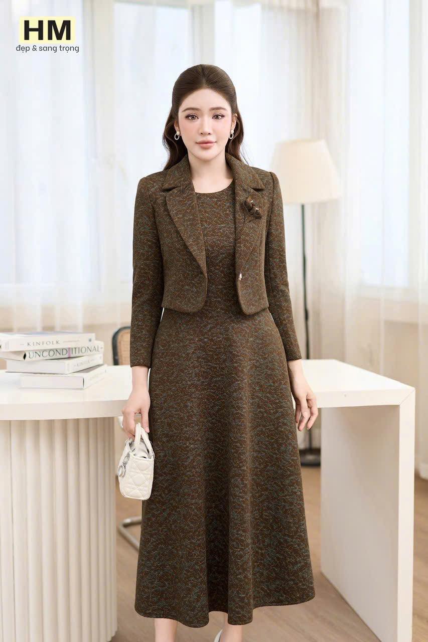 #MẪU #MỚI #LIÊN #TỤC #Set #bộ #DẠ #LEN #lớp #mặt #vải #mới #siêu #sang #Set #bán #rời #gồm #đầm #sát #nách #xoè #nhẹ #cùng #áo #vest #khoác #khỉ #cổ #đính #hoa #cuộn #nổi