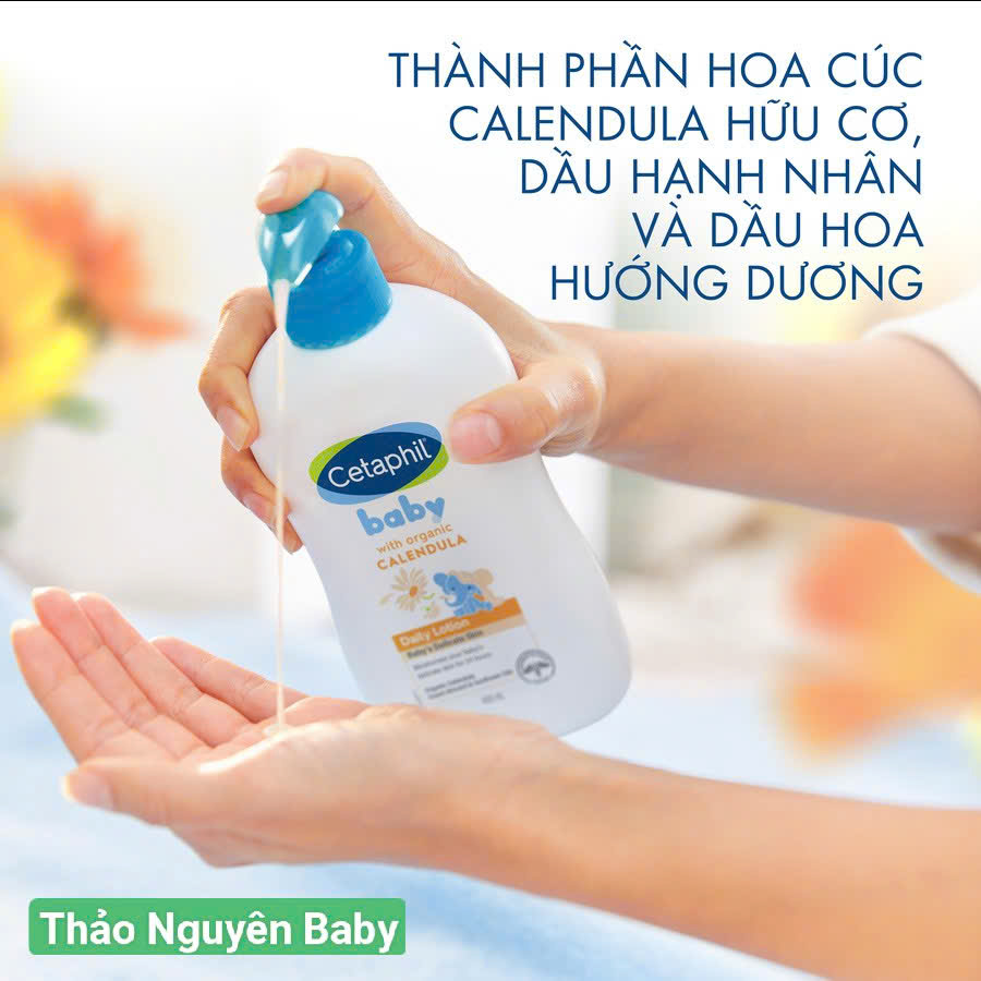 🔎Mẹ có biết: sau khi tắm, làn da bé cần được ấp ôm với sữa dưỡng ẩm Cetaphil Baby Daily Lotion với hoa cúc Calendula hữu cơ – nhãn hiệu được bác sĩ nhi khoa tin dùng với công thức Khoa Học Dịu Lành từ các thành phần thiên nhiên lành tính: