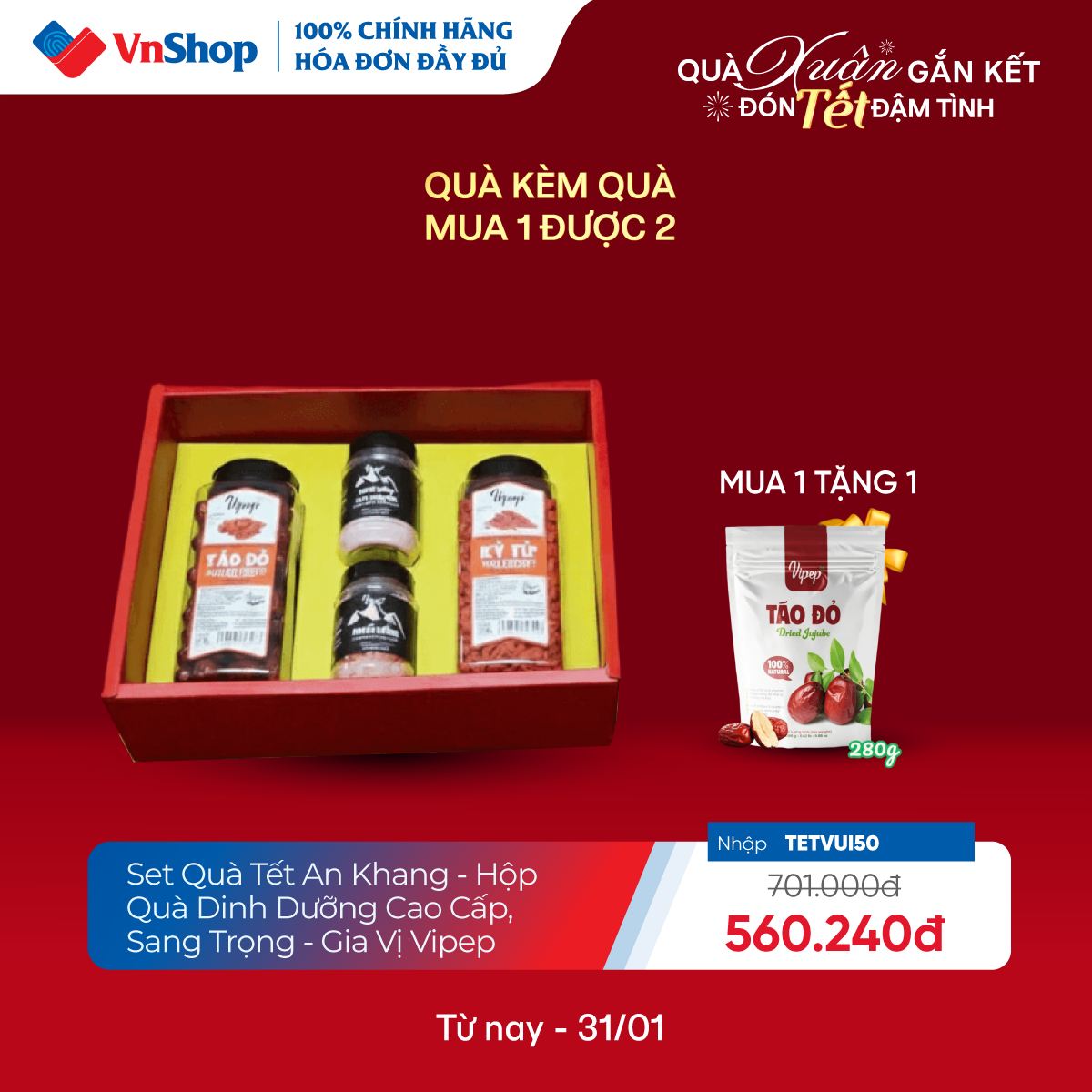 – Mua 01 Set quà Tết An Khang VIPEP chỉ #596K hoặc