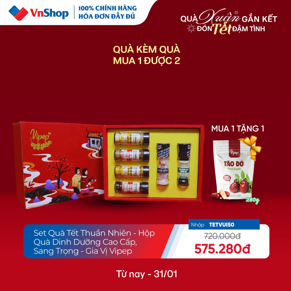 – Mua 01 Set quà Tết Thuần Nhiên VIPEP chỉ #575K hoặc