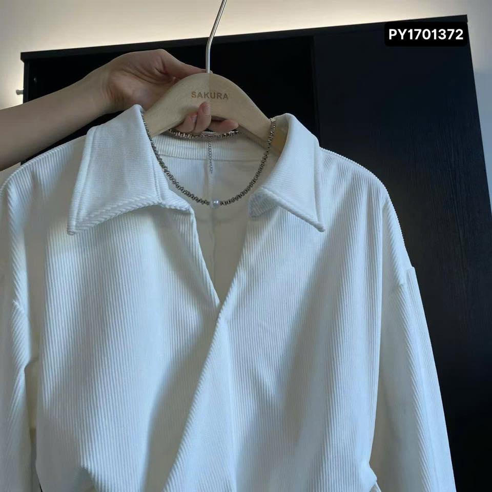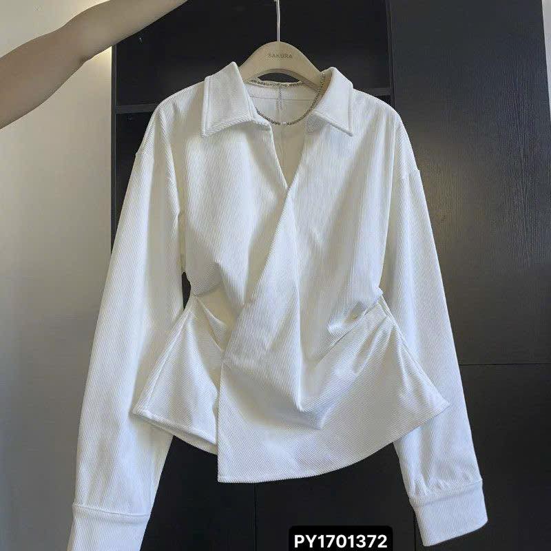 #PY1701372Mẫu #áo #trắng #thiết #kế #vạt #chéo #xếp #lớp #độc #đáo #tạo #điểm #nhấn #vòng #thon #gọn.Chất #liệu #vải #có #gân #nổi #tinh #tế #giúp #set #đồ #trở #nên #thời #thượn