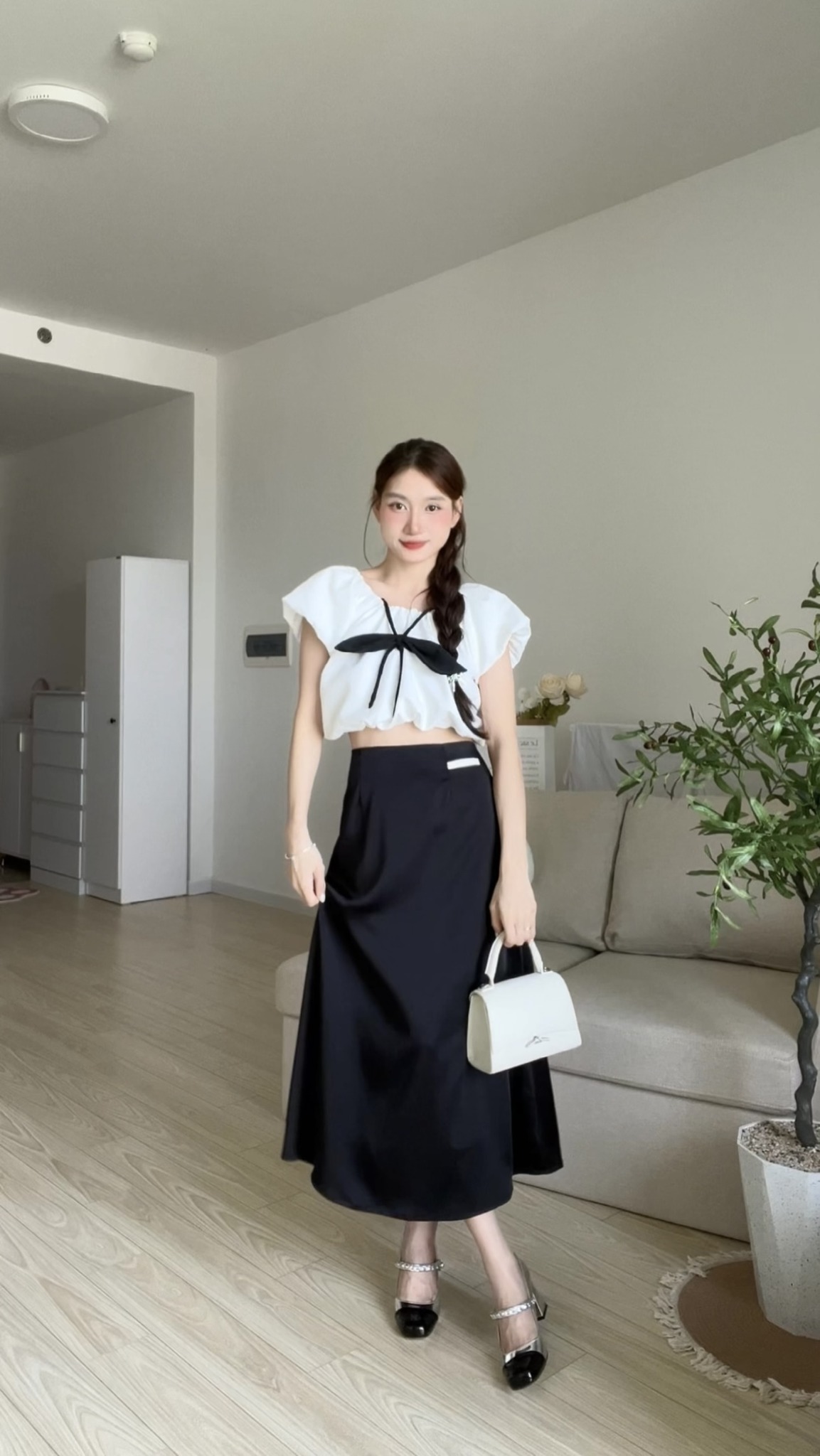 Chỉ với 2 màu đen trắng, nhưng form dáng và điểm nhấn của thiết kế sẽ giúp nàng thật nổi bật và đẹp dịu dàng hơn.