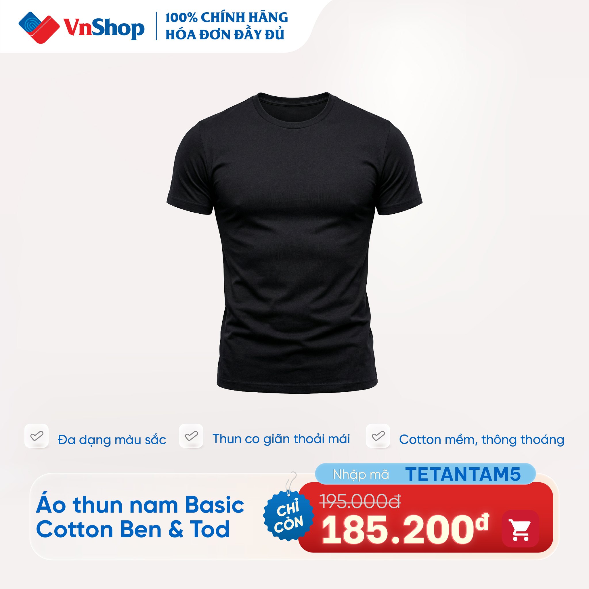– Áo thun nam Basics Cotton giảm từ 195K –> 185K