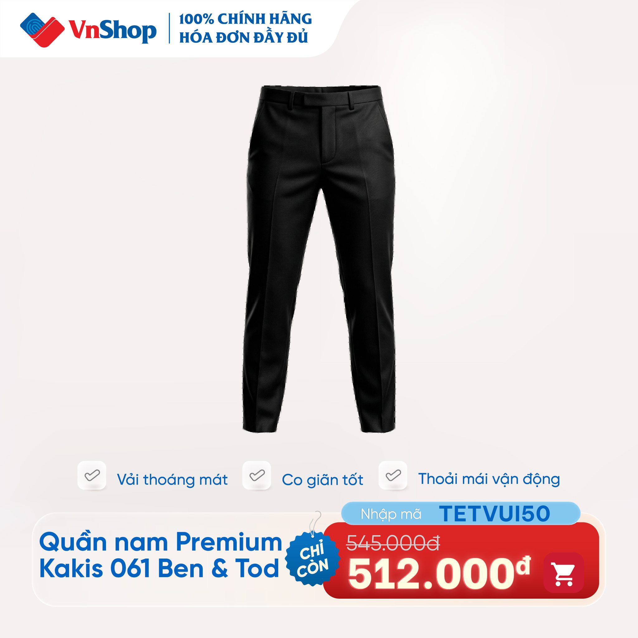 – Quần nam Premium Kakis giảm từ 545K –> 512K