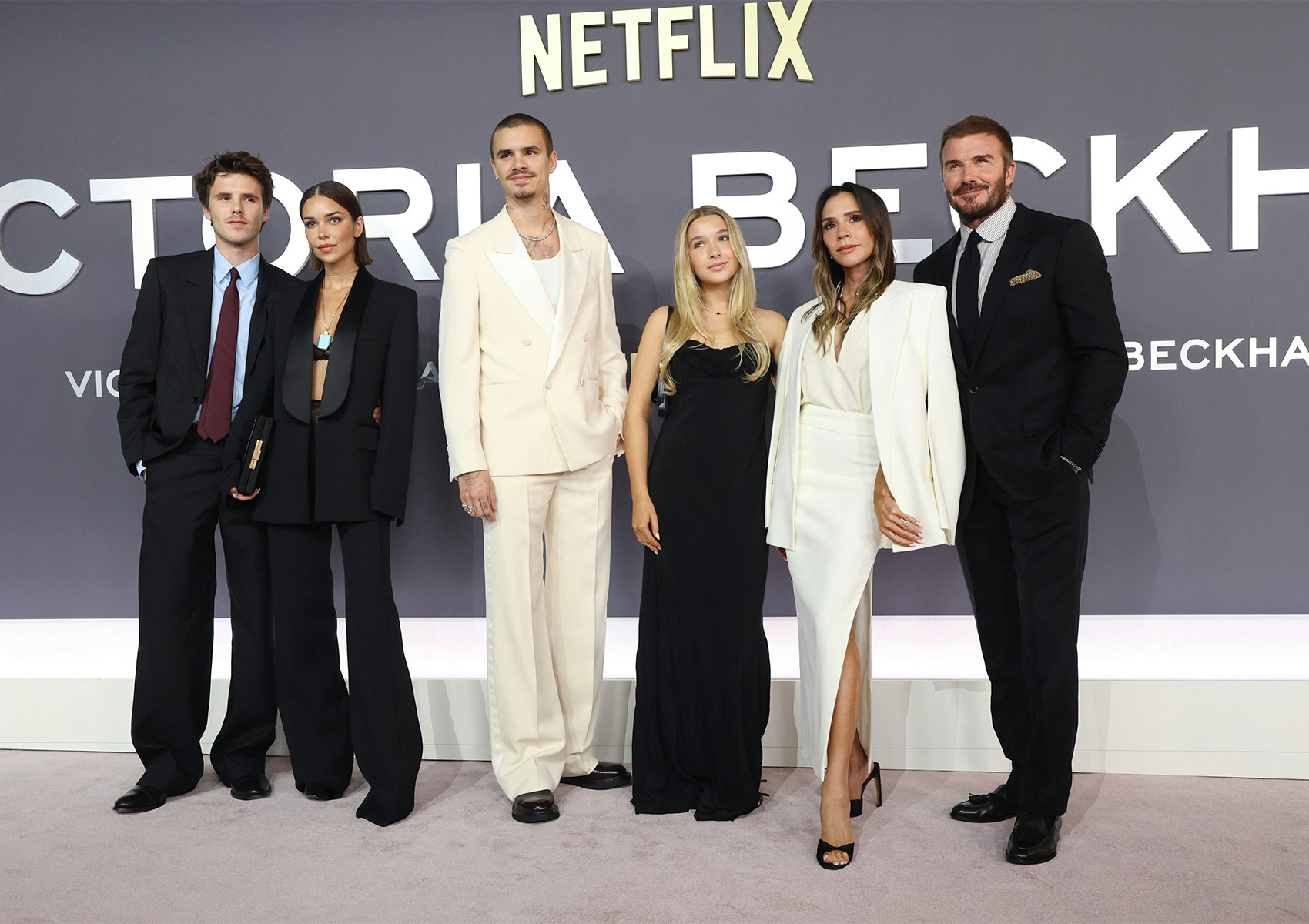 Gia đình Beckham ngày chưa mâu thuẫn, lục đục: Mọi người tề tựu tại buổi công chiếu phim tài liệu Beckham ở London, tháng 10/2023. Ảnh: Karwai Tang/WireImage/Getty Images