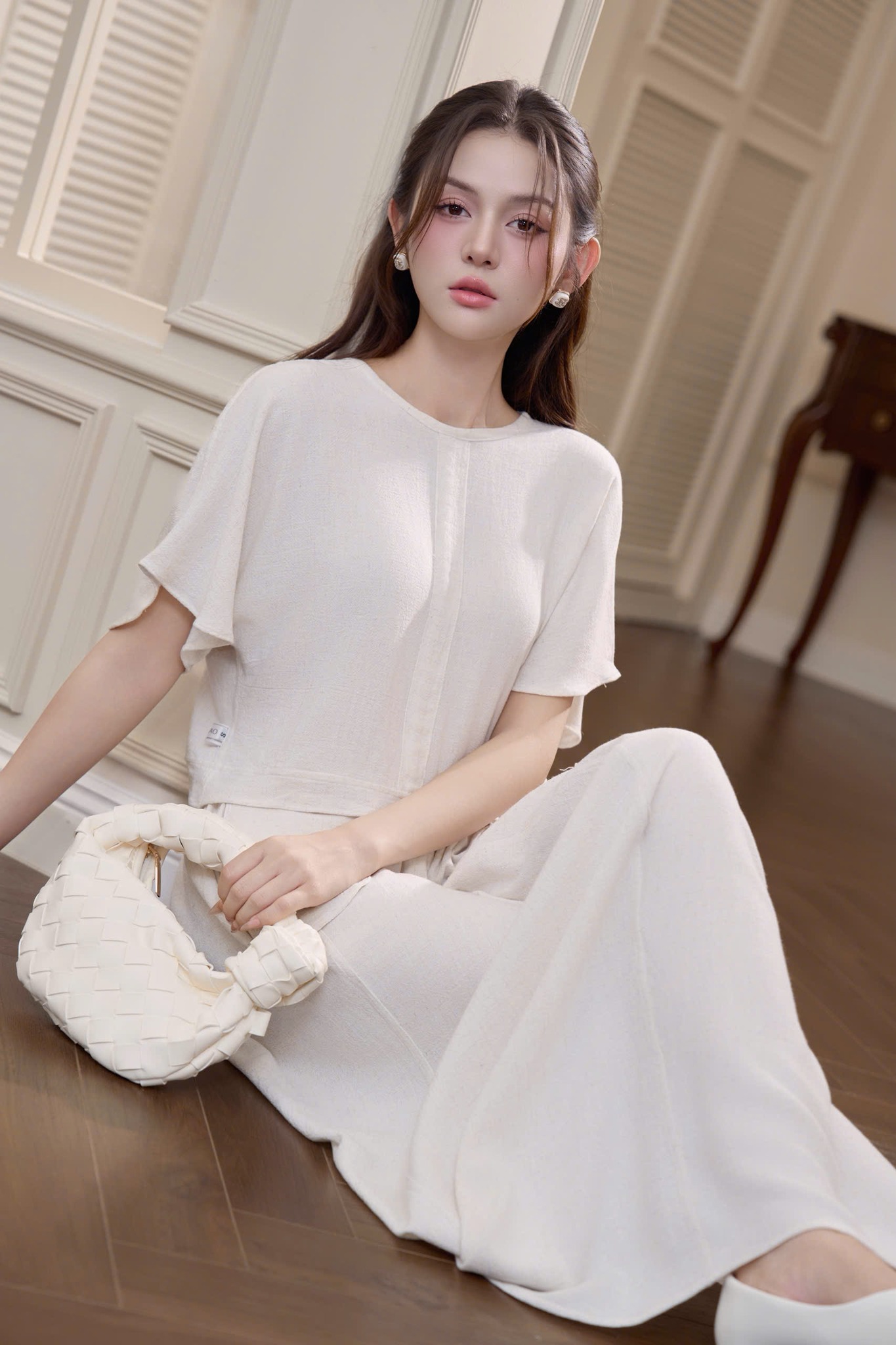 #Set #Serene #Linen #mang #vẻ #đẹp #tối #giản #và #thanh #khiết #được #chế #tác #từ #linen #cao #cấp #sắc #kem #sữa #dịu #nhẹ #Phom #dáng #suông #tay #cánh #dơi #kết #hợp #cùng #chân