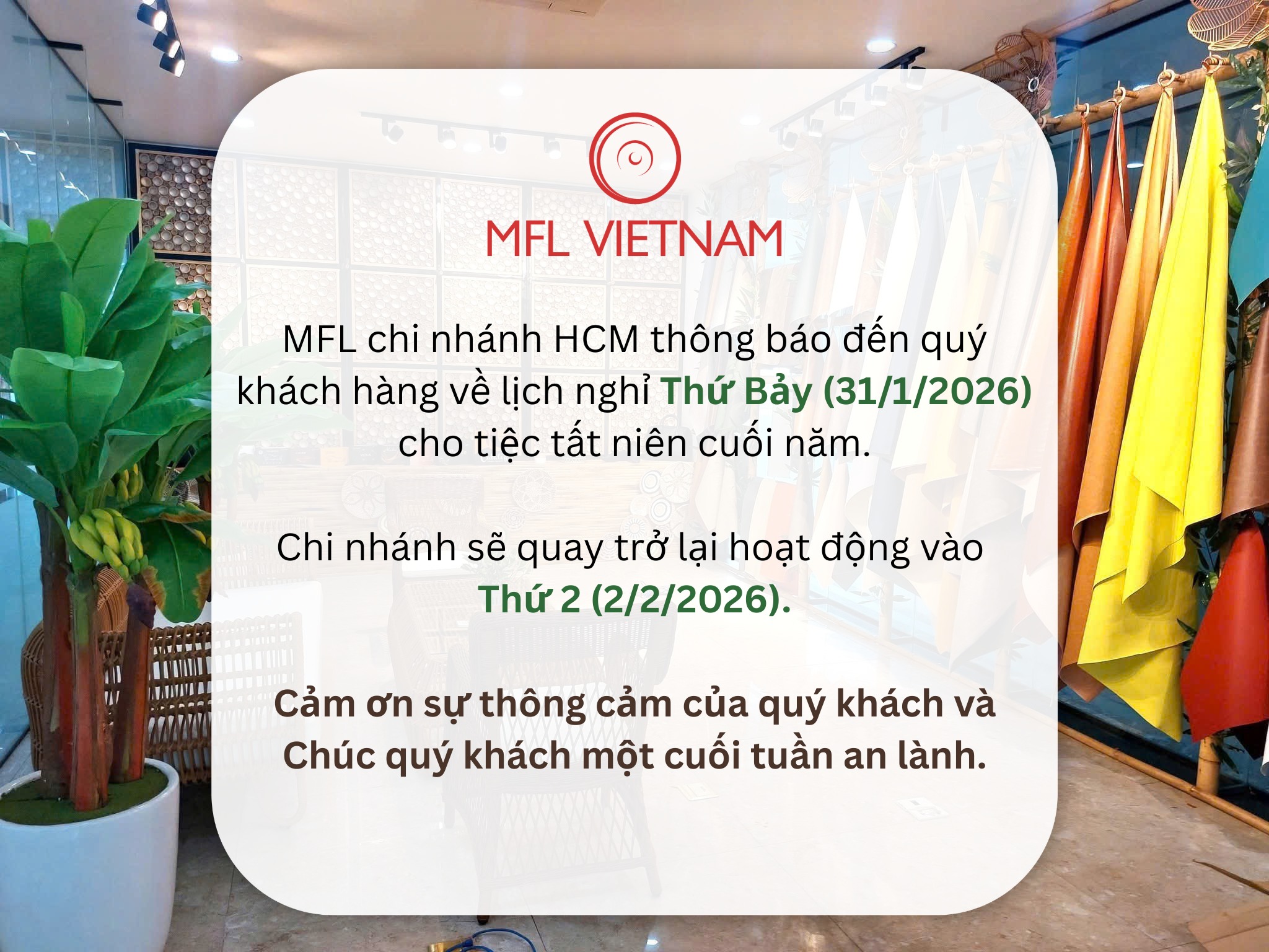 [🆕🇻🇳] MFL Vietnam – Chuyên cung cấp Da vi sợi Microfiber – sản phẩm da nhân tạo chất lượng cao [🆕Top1Vietnam🇻🇳] 👕 Top1Fashion 👗 Chúc quý khách hàng một cuối tuần an lành và thật nhiều niềm vui. Nếu cần tư vấn và chăm sóc đặc biệt trong thời gian từ 31/1 đến 2/2, quý khách hàng có , shares-0✔️ , likes-3❤️️ , date-2026-01-30 23:18:41🇻🇳🇻🇳🇻🇳📰🆕