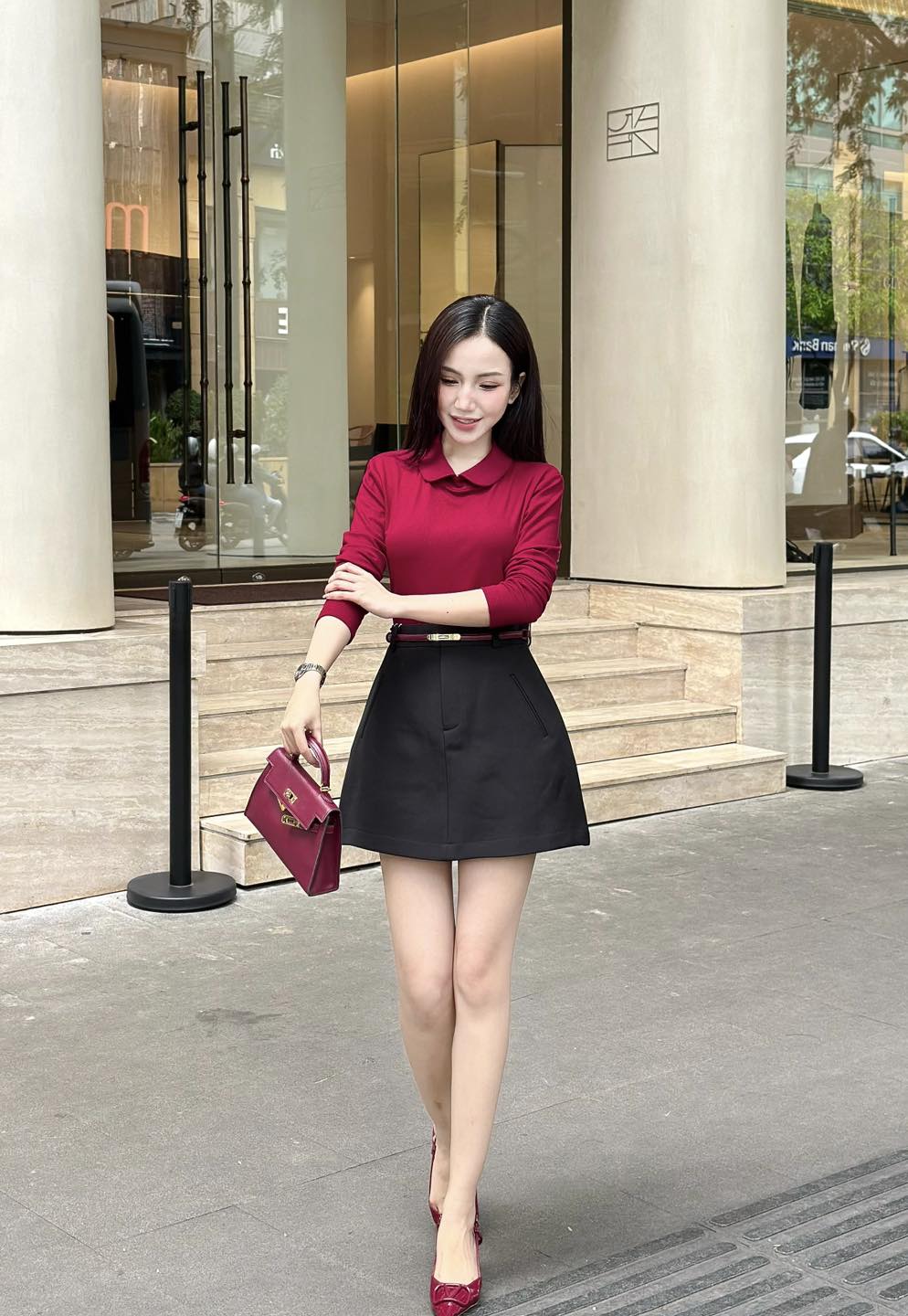 Set đỏ đô – đen tạo nên hiệu ứng tôn dáng tự nhiên – gọn gàng, cao ráo và đầy khí chất,dành cho những ...